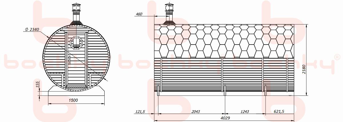 В бане-бочке «Люкс» с козырьком вы получаете уютную зону отдыха и отличную парную. Баня устанавливается краном-манипулятором в собранном виде или собирается на участке за один день.