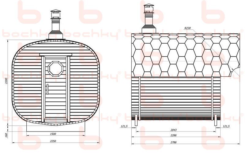 Изготавливается из ели или кедра 42х92 мм, имеет стандартную комплектацию
